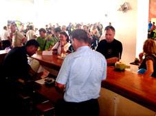 Concursantes, periodistas acreditados, jurado y otros invitados fueron recibidos en el lobby del hotel por parte de los directivos del lugar y todo un grupo de trabajadores que alegremente le dieron la bienvenida.